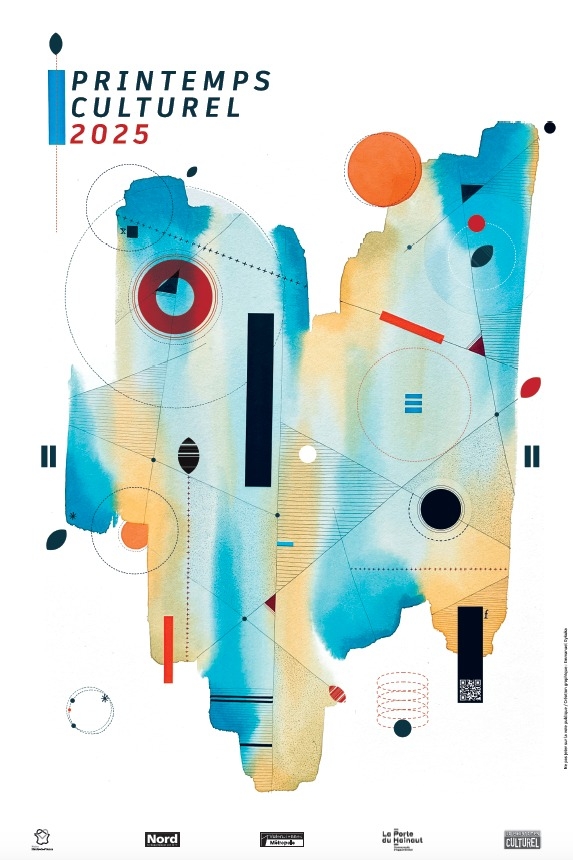 Le Printemps Culturel a fait appel à lui pour illustrer le visuel officiel de la saison 2025/26, il a travaillé sur la base d'une toile existante et « j'ai répondu à la demande du figuratif en ajoutant des éléments ». L'association basée à Douchy les mines est porteuse du dispositif Les quartiers d'art, qui provoque la rencontre entre plasticiens et participants aux ateliers. A propos de ces derniers Emmanuel nous dit qu'il « fallait sortir de l'image d'Épinal de l'aquarelle, et je suis venu avec une consigne : comprendre la pratique de l'abstrait ». Un message entendu, les toiles des participants exposés à côté des siennes en témoignent.