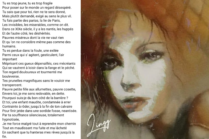 « Je pense donc je suis, et malgré tout, je suis perdue. Je suis enfermée dans mon corps et je crie, éperdue. Je tape contre les barreaux de ma terrestre réalité. Mon existence me pèse, je voudrais m 'en échapper », des premiers vers d'un poème publié sur ses réseaux sociaux par Catherine le 16 février. Car faute de pouvoir accéder au monde de l'édition, la poétesse a trouvé grâce aux outils en ligne la possibilité de partager son art, « si il y a un moyen d'expression ça sera celui-là », dit-elle satisfaite de vivre une époque où le support permet de diffuser ses écrits. Cela dit, le format livre serait une option qui n'est pas oublié, « mais alors un livre commun avec les reproductions de Patrick et mes écrits », hybride une fois de plus.
