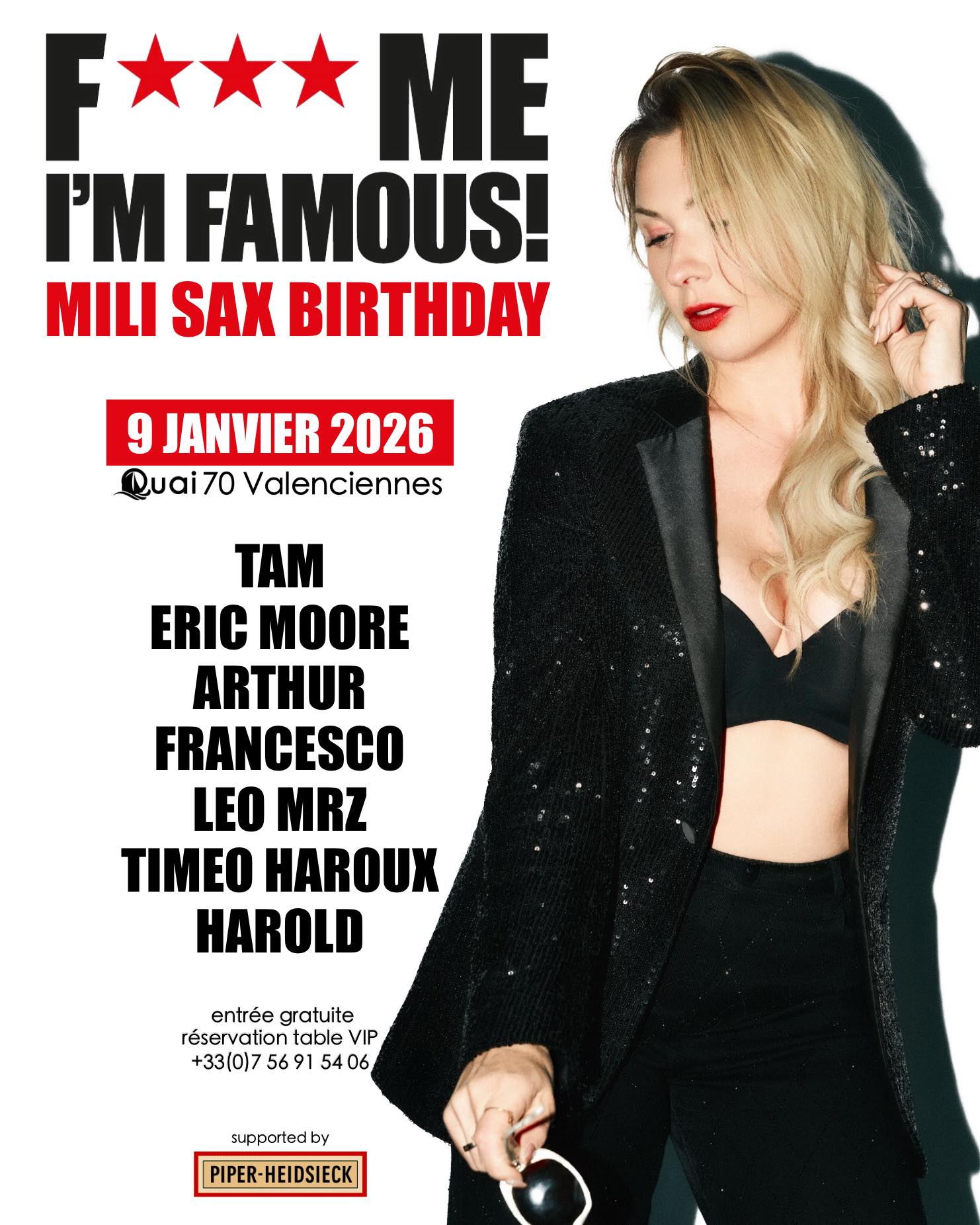 C'est aux côtés de Tam, Eric Moore, Arthur, Francesco, Leo MRZ, Timeo Haroux et Harold que Mili Sax se produira au Quai 70 lors de sa Birthday Party. Une soirée de 19h à 2h en entrée gratuite mais à jauge limitée. Ainsi ne tardez pas à réserver, des tables VIP sont mises à disposition. Infos et réservations aux liens et coordonnées ci-dessous.