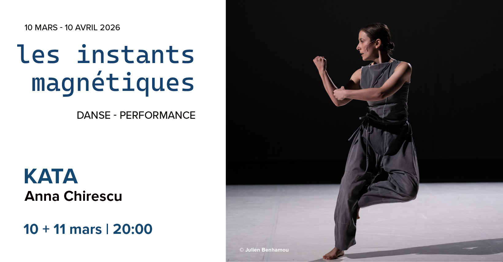 La chorégraphe croise la puissance symbolique de cet art martial avec un registre historique, folklorique et autobiographique. Au seuil d'un passé méconnu et au croisement de plusieurs frontières géographiques, l'artiste interroge cet héritage intime, la mémoire familiale et ses racines roumaines. Entremêlant danse, archives personnelles, musique électronique live, exploration vocale et costumes, elle tisse un récit mélancolique autour des origines. KATA convoque au présent, un passé et des récits à travers lesquels l'intime se partage et se fait politique.