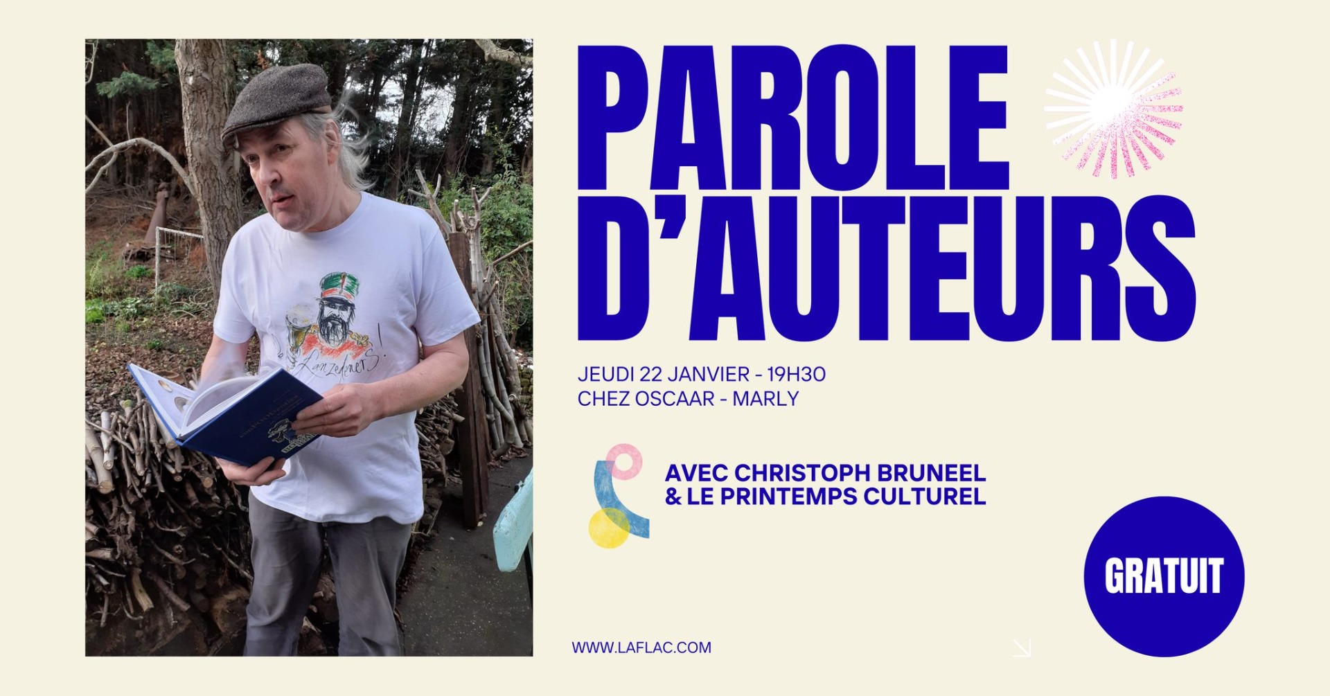 Organisées par l'association du Printemps culturel et accueillies par la FLAC, les soirées "Parole d'auteurs" sont consacrées à la découverte de la poésie contemporaine, lue et/ou performée sur scène par celles et ceux qui l'écrivent. Ces soirées se déroulent en deux temps : un.e auteur.e invité.e dispose tout d'abord d'une trentaine de minutes pour faire découvrir ses textes puis le micro est ouvert aux membres du public désireux de se faire entendre !