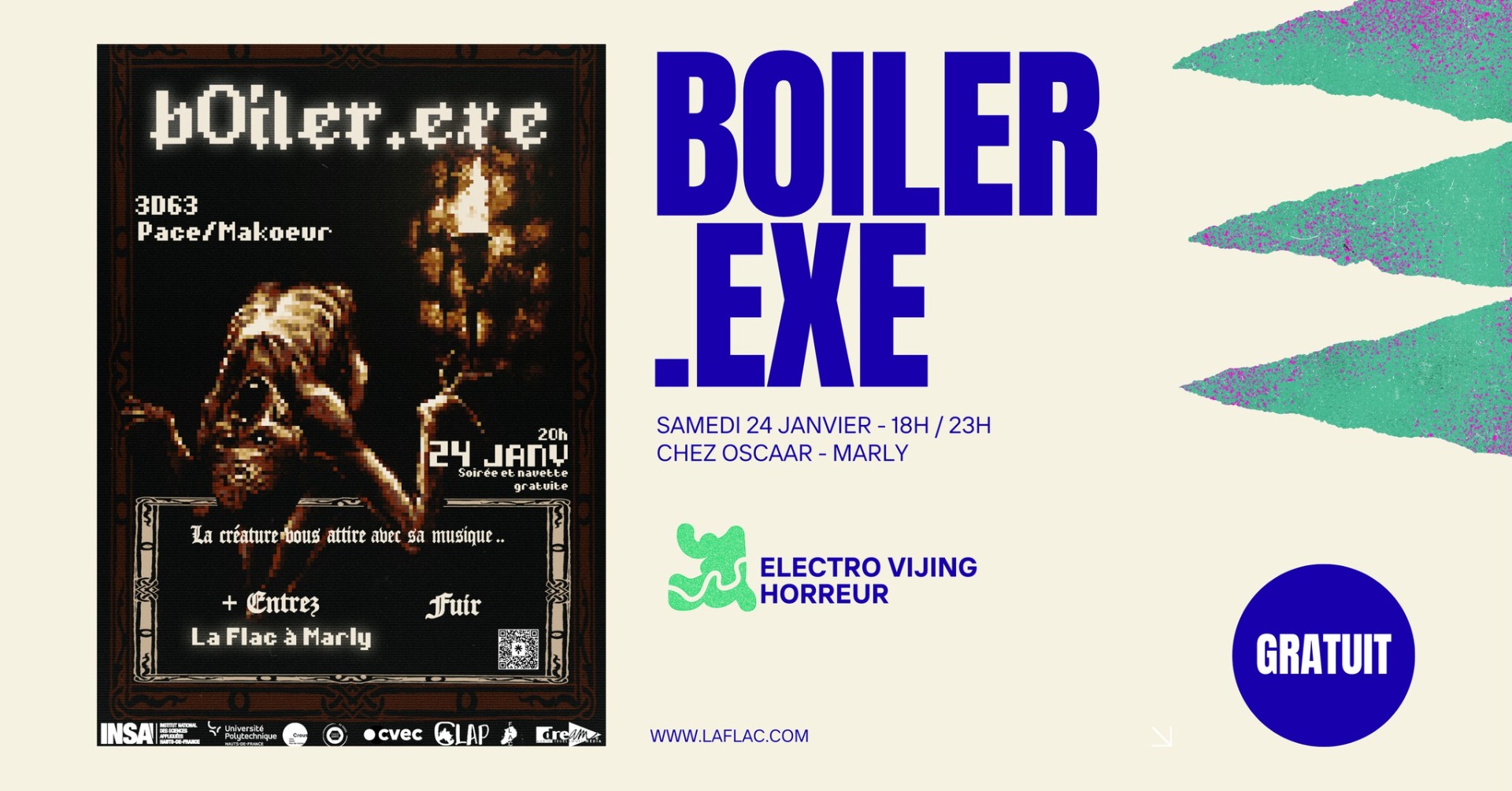 Boiler.exe, c'est un événement Djset avec deux artistes de musique électronique qui vont vous faire vivre une expérience délirante sur le thème des jeux vidéo d'horreur rétro.