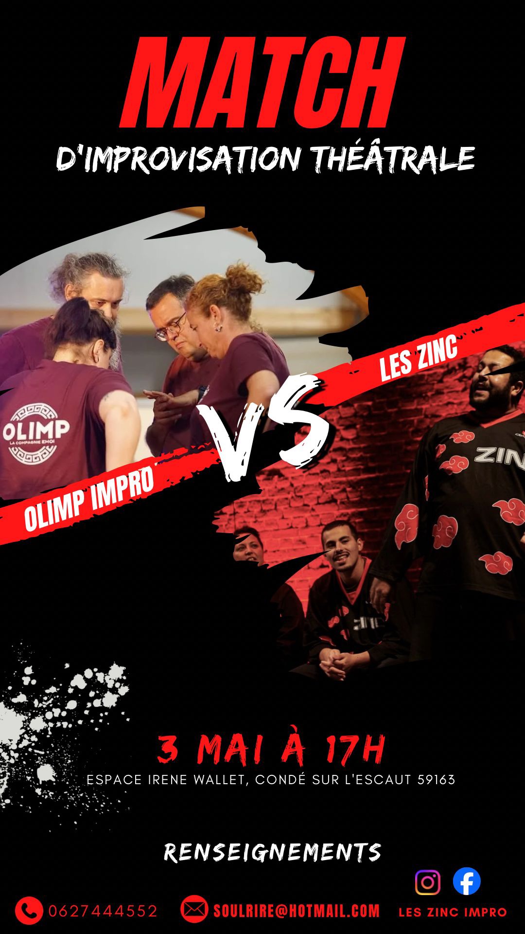 Préparez-vous pour un duel explosif d'impro où tout peut arriver ! Deux équipes survoltées s'affrontent à coups de répliques, d'humour et de créativité... et vous, le public, serez les juges !