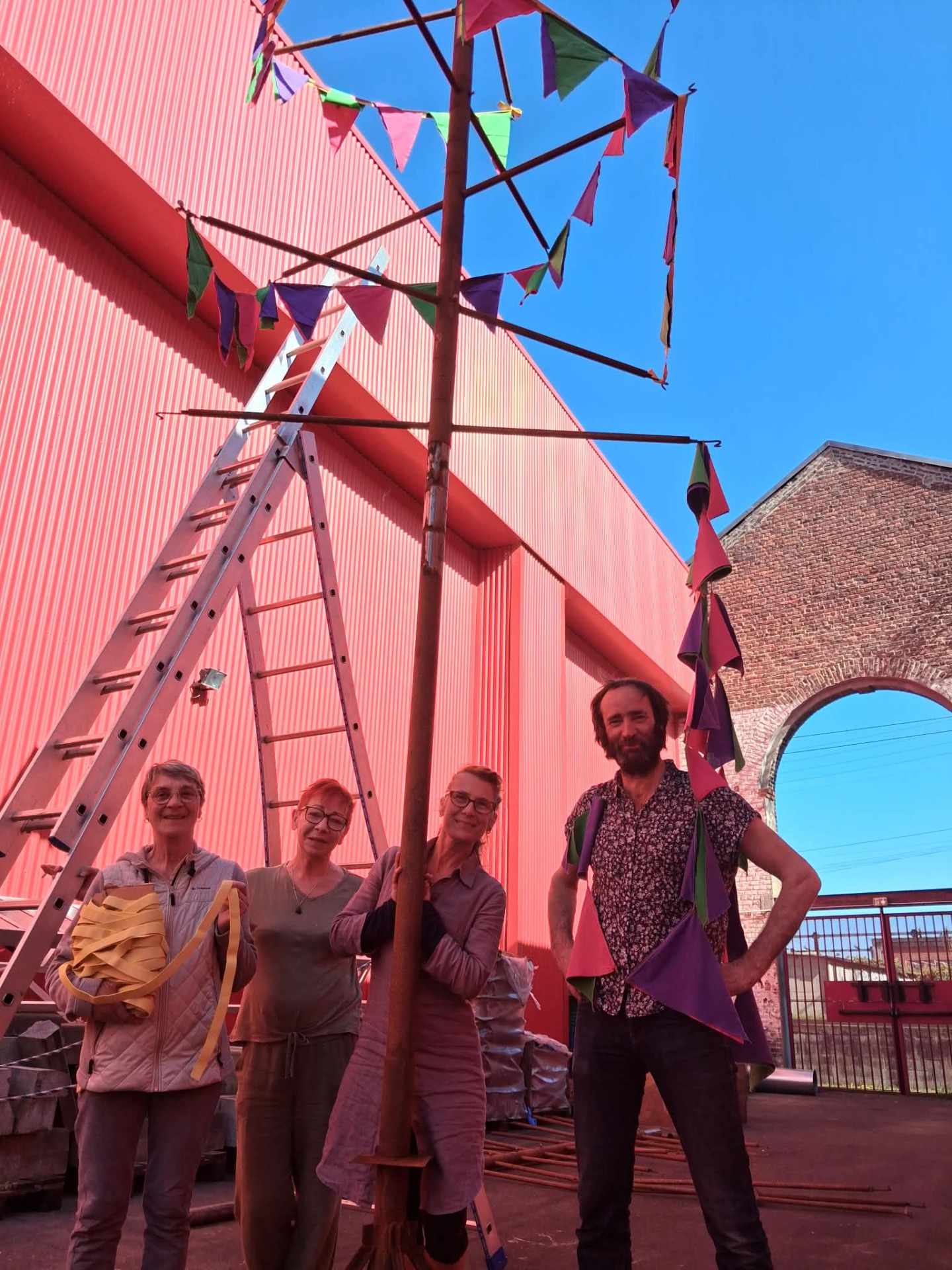 Les Turbulentes c'est un festival coloré et bariolé, de par sa programmation mais aussi dans l'esthétique de sa scénographie. Les rues de Vieux-Condé sont métamorphosées le temps des trois jours de l'événement, et cette année comme en 2025 c'est une vision apportée par l'artiste pluridisciplinaire Éric Bézy alias Popé qui donne la tonalité. Pour épauler Popé dans la réalisation des décors et divers supports, on retrouve à ses côtés le groupe de bénévoles des Petites Mains. Petites par le nom, mais grandement investies à créer de toutes pièces un univers d'arts dans la rue. Entre deux mouvements de découpage, collage et couture, nous avons rencontré Marlène, Bernadette et Évelyne qui ont eu l'amabilité de se poser quelques instants pour répondre à nos questions.